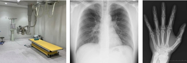 レントゲンとも呼び、X 線を用いて肺や骨など様々な部位を撮影し画像にします。